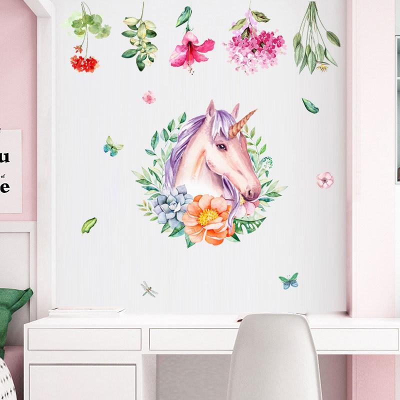 ウォールステッカー 壁紙シール ユニコーン 花 フラワー カラフル