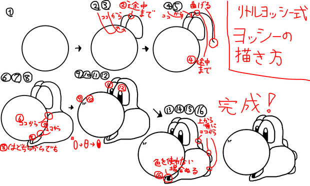 リトルヨッシー式ヨッシーの描き方 顔だけ リトヨシ さんの