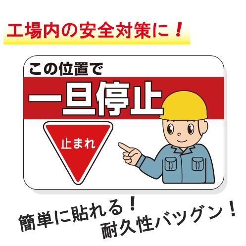 工場内安全対策シール イラスト 一旦停止 縦30cm 横45cm Sss